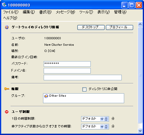 [ゲートウェイユーザID]に論理的な番号を付けて、テクニカルサポートで必要になった場合にゲートウェイを識別できるようにしておくことをお勧めします。例えば、元のインターネットサービスのIDが1000000000であれば、1000000001または2000000000を使用してください。また、4000000000、9000000000、および9000000001のIDは、ディレクトリサービスなど各種サービスに関連したIDなので使用しないでください。