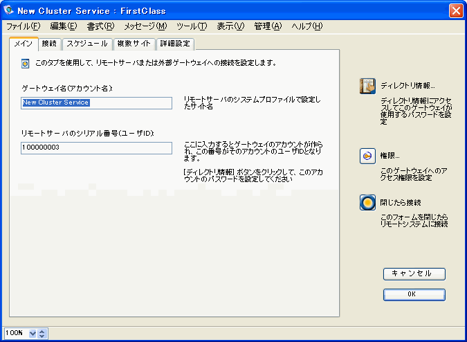 新しいクラスタ用ゲートウェイの[ディレクトリ情報]フォームと新しいクラスタの[ゲートウェイの設定]フォームの両方を閉じて保存します。