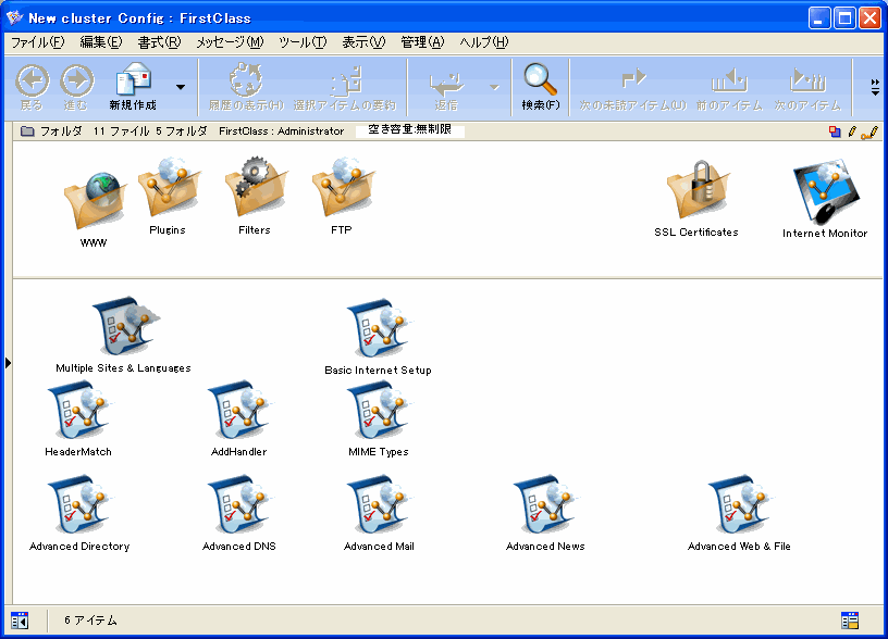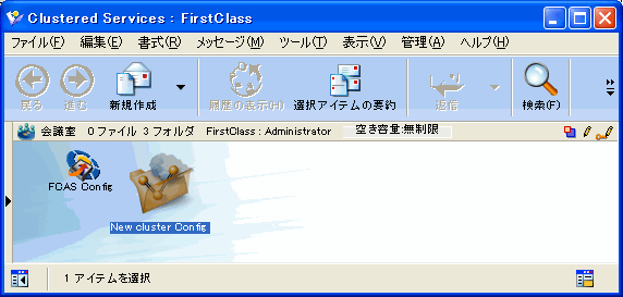 新しく作られたフォルダは、ゲートウェイ(サービス)名の後に「Config」の文字が付いた名前になります。この例では、[New cluster Config]です。このフォルダ内には、元の[Internet Services]フォルダ内にあるのと同じフォルダとフォームが作られています。