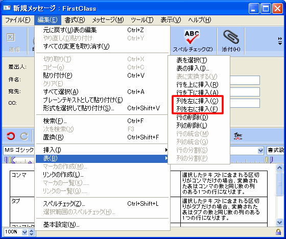[編集]>[表]>[列を左に挿入]を選択します。 |