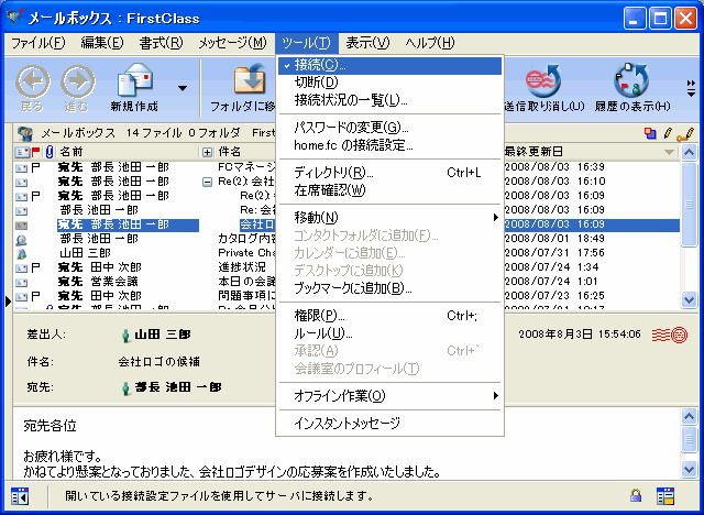 新しいメッセージの通知は、通知ポップアップで表示されます。ただし、FirstClassクライアントまたはサーバの再起動直後は通知されません。このポップアップには、以下のボタンがあります。