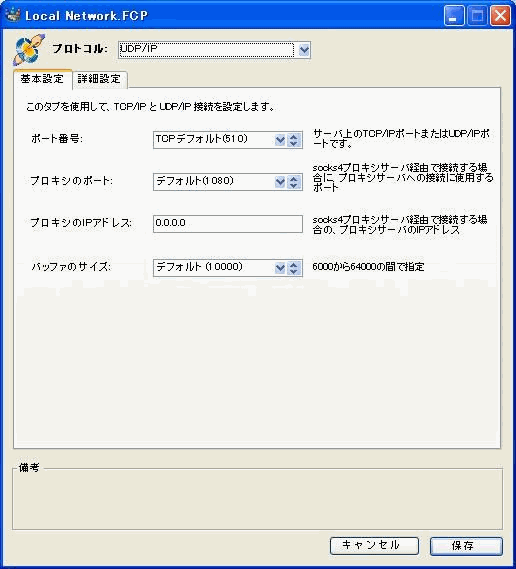 Basic Internet接続ではUDP/IPプロトコルを使用します。