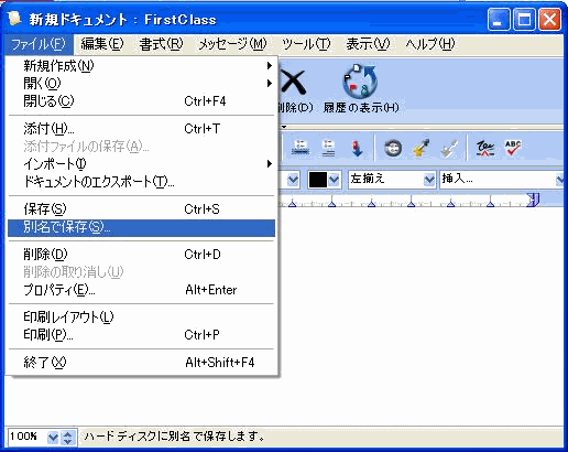 ドキュメントをFirstClassの他のコンテナに保存するには、ドキュメントを開いた状態で[ファイル]>[別名で保存]を選択してください。こうすると、名前と場所が指定できるようになります。ドキュメントをコンピュー