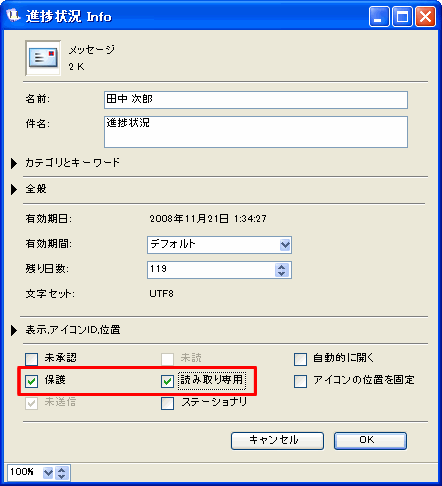 オブジェクトを変更されないようにするには、[読み取り専用]を選択してください。