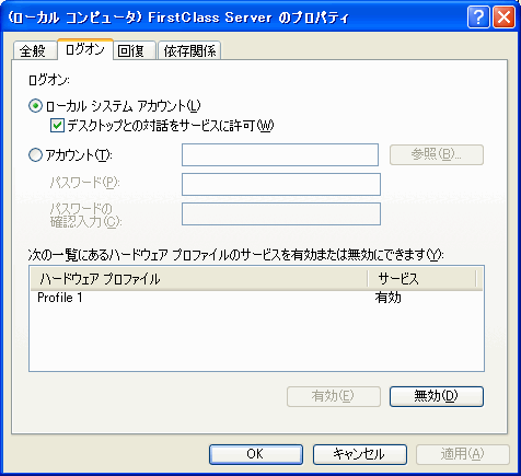 「ローカルシステムアカウント」で実行されているWindowsのサービスは、システムによってネットワークアクセスが制限されています(下にあるサービスのプロパティ画面を参照してください)。