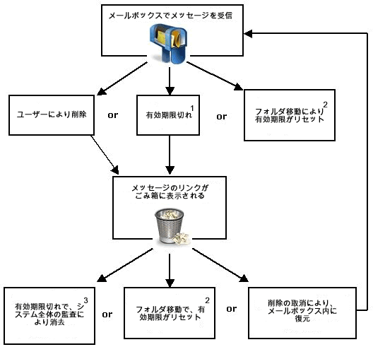 有効期間が過ぎたアイテムは自動的にごみ箱に移動され、その後監査によって消去されます。そのメッセージをまだ読んでいない受信者がいた場合でも消去されます。