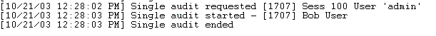 副管理者権限を持つユーザがシステム全体の監査を開始すると、コンソールには以下のような情報が出力されます。