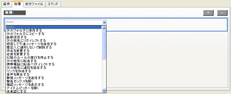 以下の処理は、[詳細ルール]フォームと同じ機能を備えています。これらの処理についての詳細は、[詳細ルール]フォームのヘルプを参照してください。