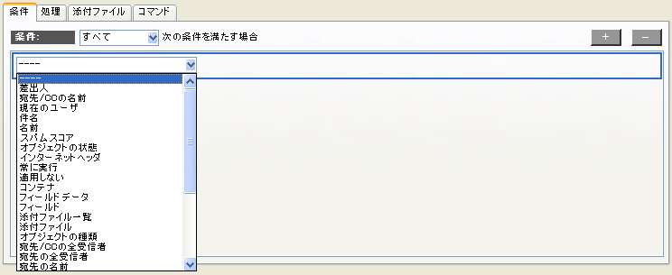 [条件]タブは、詳細ルールと同じ法則で動作します。