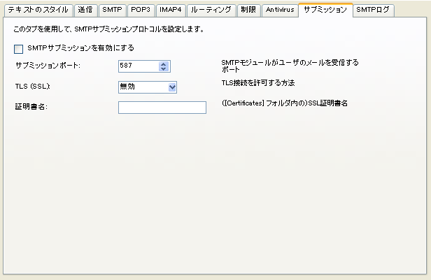 このタブを使用して、SMTPサブミッションのプロトコルを設定します。