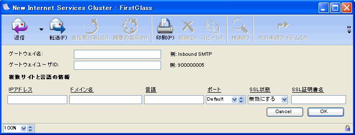 以上の作業が完了したら、新しいクラスタサービスごとに、インターネットサービスの複製を1つインストールする必要があります。通常のインターネットサービスをインストールするときと同じ要領でインストールを行ってください(FirstClassのデスクトップにあるヘルプを参照)。インストールしたら、サーバマシンにゲートウェイするために新しいサービス設定する必要があります。
