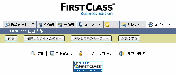 [簡易(Webメール)]インタフェースとその機能は、標準のWebインタフェースほど複雑ではありません。基本的な機能だけが必要で、標準テンプレートにある機能をすべて使用する必要がない場合は、この簡易インタフェースを利用するとよいでしょう。[簡易]テンプレートには権限設定が適用されるため、ユーザごとに機能の異なるインタフェースを提供できます。ユーザやユーザグループの権限設定については、「ユーザグループの権限について」を参照してください。