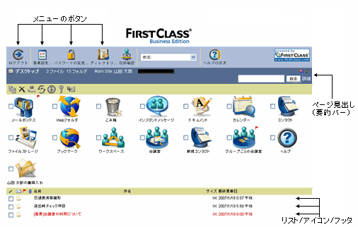[フォント]タブの設定は、Webクライアントインタフェースの種類に関わらず、下図に示した場所に適用されます。