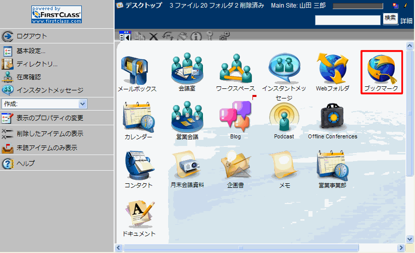1 デスクトップで[ブックマーク]を開きます。