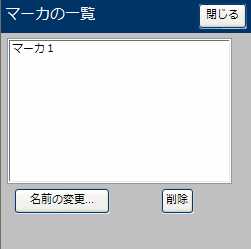 マーカの一覧から、マーカを選択して削除したり名前を変更したりできます。