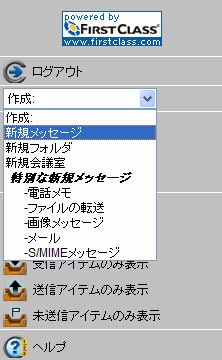 FirstClassの標準メッセージフォームを使用してインターネット経由でメッセージを送信する場合、[差出人]欄に表示されるアドレスを選択できます。インターネット経由でこのメールを受信した相手にはFirstClassのユーザ名は表示されず、インターネットメールのアドレスだけが表示されます。