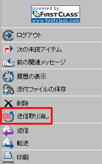 メッセージの送信を取り消すには、そのメッセージを開いて[送信取り消し]をクリックしてください。メッセージが編集可能になり、メールボックス内でメッセージの横に未送信フラグが表示されます。
