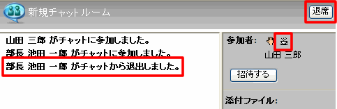 インスタントメッセージセッションを終了するには、[退席]をクリックします。退席したことは、他の参加者に通知されます。