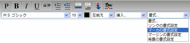 本文内にあるすべてのマーカを一覧表示するには、[書式]>[マーカの書式設定]を選択してください。マーカの名前が、本文内に配置されている順番で一覧表示されます。