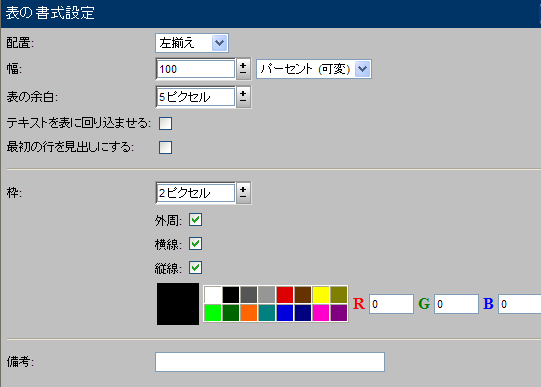 3 [表の書式設定]フォームの以下のフィールドを更新します。