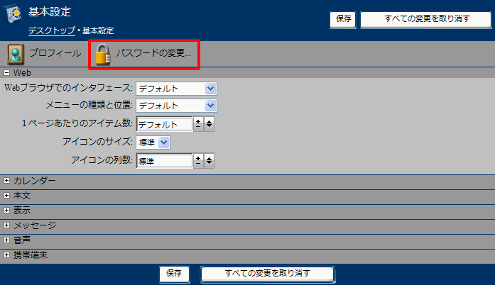 デスクトップのツールバーに[基本設定]ボタンが表示されている場合は、以下の手順でパスワードを変更してください。