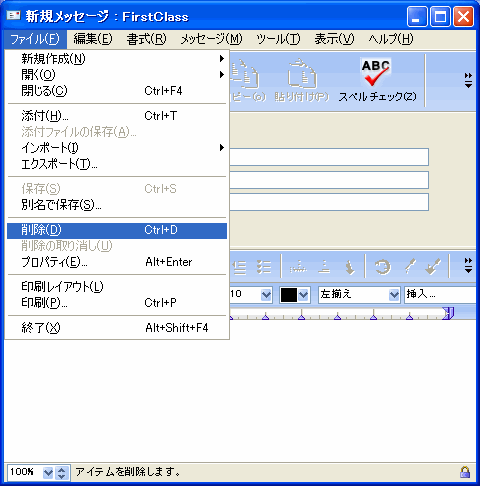 開いたフォームを使ってメッセージを作成することをやめる場合は、[ファイル]>[削除]を選択してください。