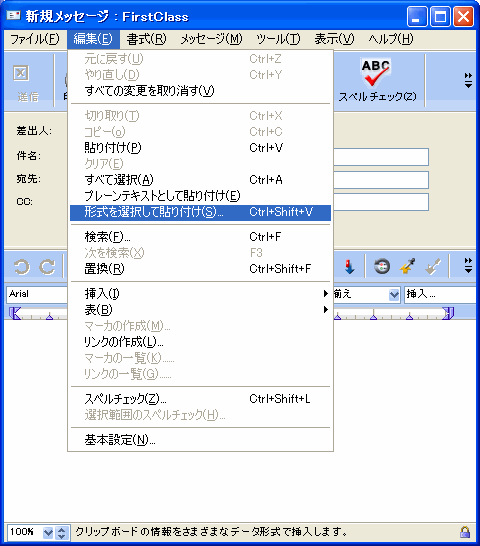 FirstClassに貼り付ける本文のファイル形式を指定するには、以下の操作を行ってください。