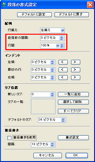 段落の間隔の変更
