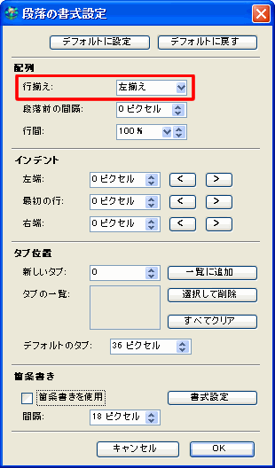 段落の行揃えの変更