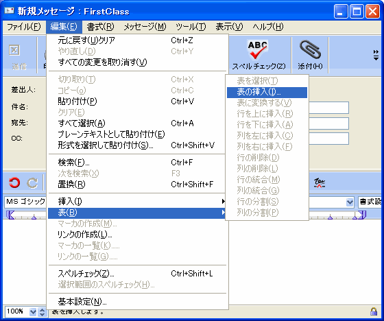 表を利用すると、行と列に分かれたセルに内容を入力できます。表では、行のセルと列のセルに本文を挿入できます。すでに他のアプリケーションで表を使用したことがあれば、FirstClassの表の機能もすぐにご理解いただけます。
