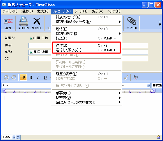 [メッセージ]>[送信して閉じる]を選択します。 |