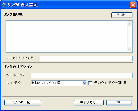 マーカにリンクするには、[マーカにリンクする]をクリックしてください。マーカ名が[リンク先URL]に表示されます。