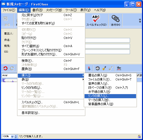 2       [編集]>[挿入]>[リンクの挿入]を選択します。