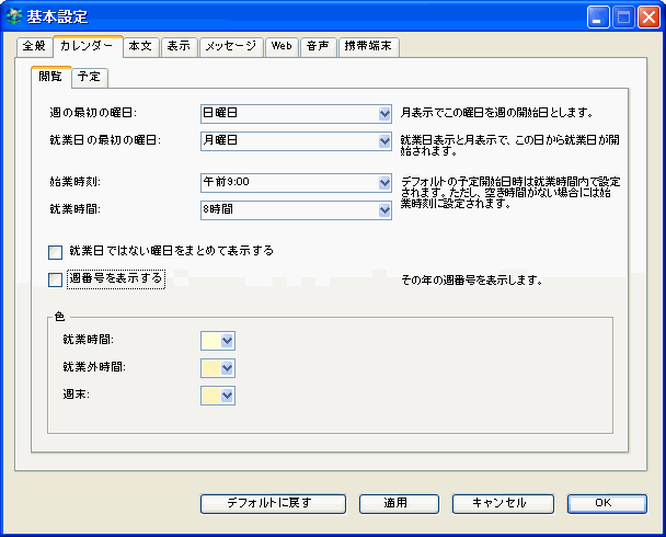 •     週の始まる曜日を変更する(月表示と小さい月間カレンダーペイン)