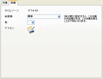 今日が開始日の作業が作成されます。 作業に色を付けるには、コンテキストメニューから[色]を選択します。 他に詳細情報を追加するには、その作業を開いてください。 |