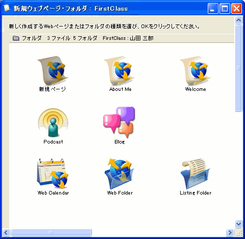 4       基本的なWebページで使用するテンプレートを1つ選択します。