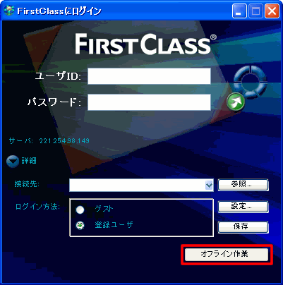 1 FirstClassを起動して、[FirstClassにログイン]フォームを開きます。