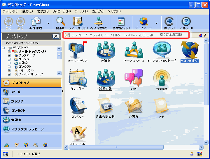 要約バーには、ユーザに割り当てられている総ディスク容量がツールチップで表示されます。