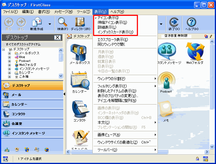 ウィンドウのペインにあるオブジェクトは、下図のように大きいアイコンとして表示できます。