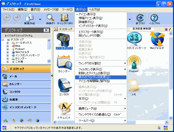 2 [表示]>[表示のプロパティの変更]を選んでください。