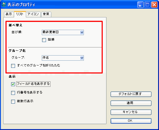 一覧表示のアイテムの並べ替え
