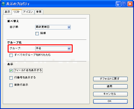 一覧表示されたアイテムのグループ化