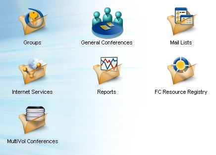 ユーザが共同作業を行えるようにするための会議室を追加するフォルダです。ここに追加した会議室がユーザに表示されるのは、管理者がユーザを会議室に参加者として登録するか、ユーザの所属するユーザグループのモデルデスクトップに会議室のエイリアスを追加するか、ユーザが閲覧できるコンテナ内に会議室のエイリアスを置いた場合だけです。