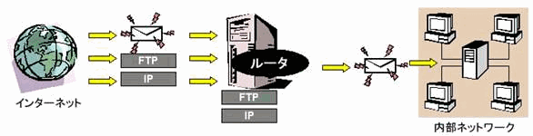 ネットワークレベルのファイヤウォールは、スクリーニングルータの名で広く知られています。または、パケットフィルタと呼ばれることもあります。これは、パケットをスクリーニングする(ふるい分けする)という基本的な動作を行うファイヤウォールです。一般的に、このファイヤウォールはパケットのアドレスを調べて、そのパケットをローカルネットワークに通過させるか、入ってこないように遮断するかを判断します。
