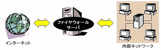 ファイヤウォールの基本的な構造はどれも同じで、お使いになるファイヤウォールの種類によって多少の違いがあるだけです。ファイヤウォールサーバでは、まずインターネットから送られてくるパケットをすべて調べます。また、ご利用のネットワーク経由で送られてくるパケットも調べます。これは、すべてのトラフィックが通るメインゲート、または「隘路(チェックポイント)」と考えることができます。ファイヤウォールサーバは、インターネットとご自分のネットワークとの間に配置され、システムのセキュリティを守る働きをします。