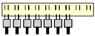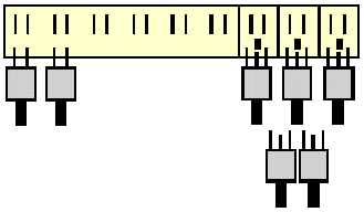 次の例は、セッションライセンスを購入した場合です。セッションライセンスの購入によってネットワークセッション(差し込み口)の一部が3ピン対応に変更されたため、リモートユーザ(3ピンのプラグ)にもレギュラーユーザ(2ピンのプラグ)にも対応可能です。ただし、リモートユーザは、所有するセッションライセンス数と同じ数の差し込み口しか使用できないことにご注意ください。