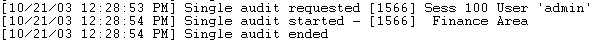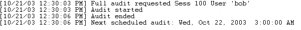 副管理者権限を持つユーザがシステム全体の監査を開始すると、コンソールには以下のような情報が出力されます。