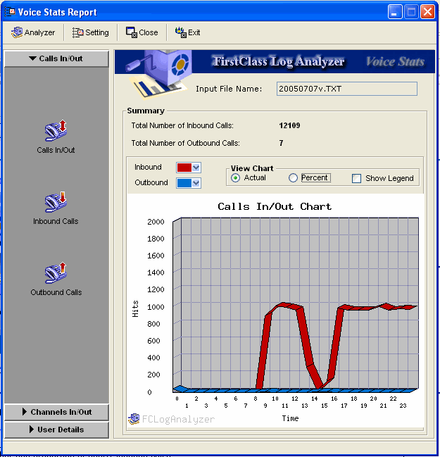 If you are a FirstClass Unified Communications customer, you can configure the server to log your inbound and/or outbound call statistics. Use Log Analyzer to analyze these statistics.