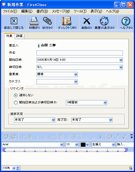 今日が開始日の作業が作成されます。 作業に色を付けるには、コンテキストメニューから[色]を選択します。 他に詳細情報を追加するには、その作業を開いてください。 |