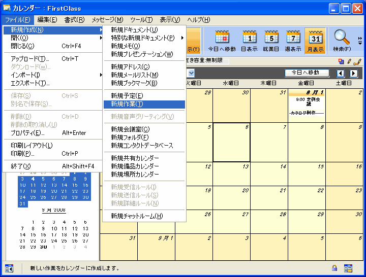 カレンダーに作業を追加するには、以下の操作を行ってください。